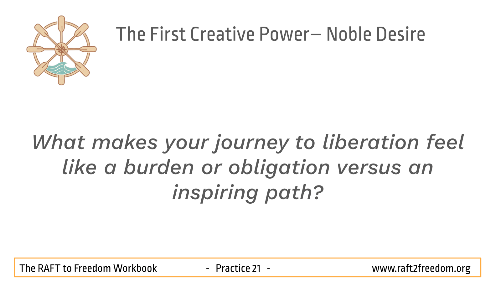 - What makes your journey to liberation feel like a burden or obligation versus an inspiring path?