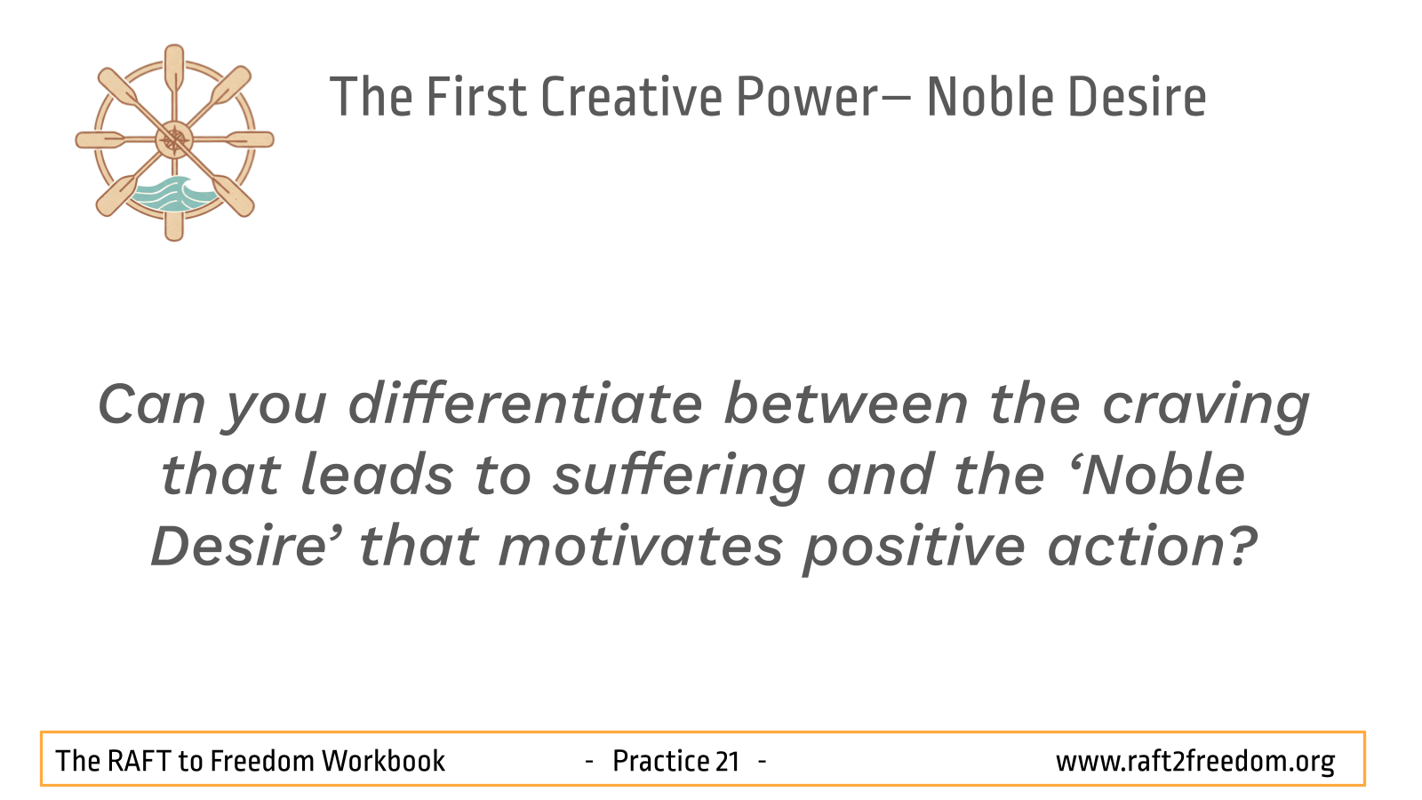 - Can you differentiate between the craving that leads to suffering and the ‘Noble Desire’ that motivates positive action?