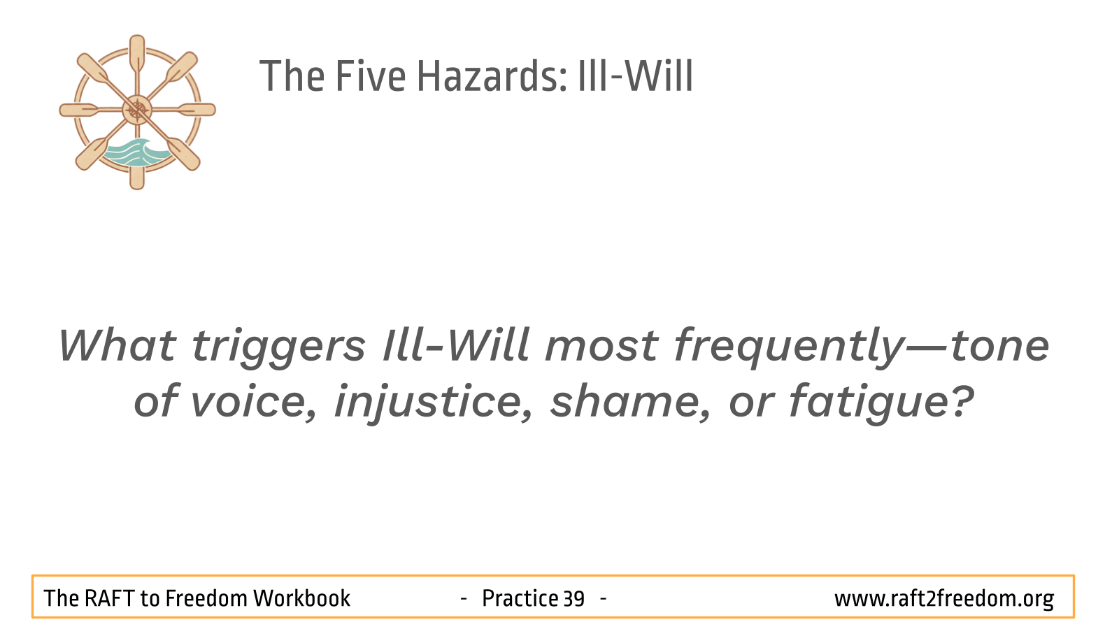 - What triggers Ill-Will most frequently – tone of voice, injustice, shame, or fatigue?