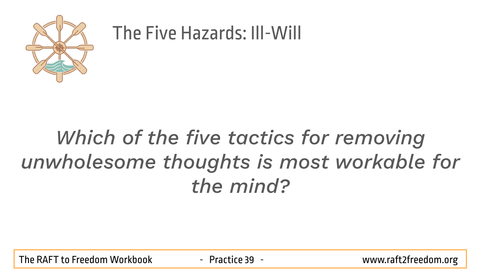 - Which of the five tactics for removing unwholesome thoughts is most workable for the mind?