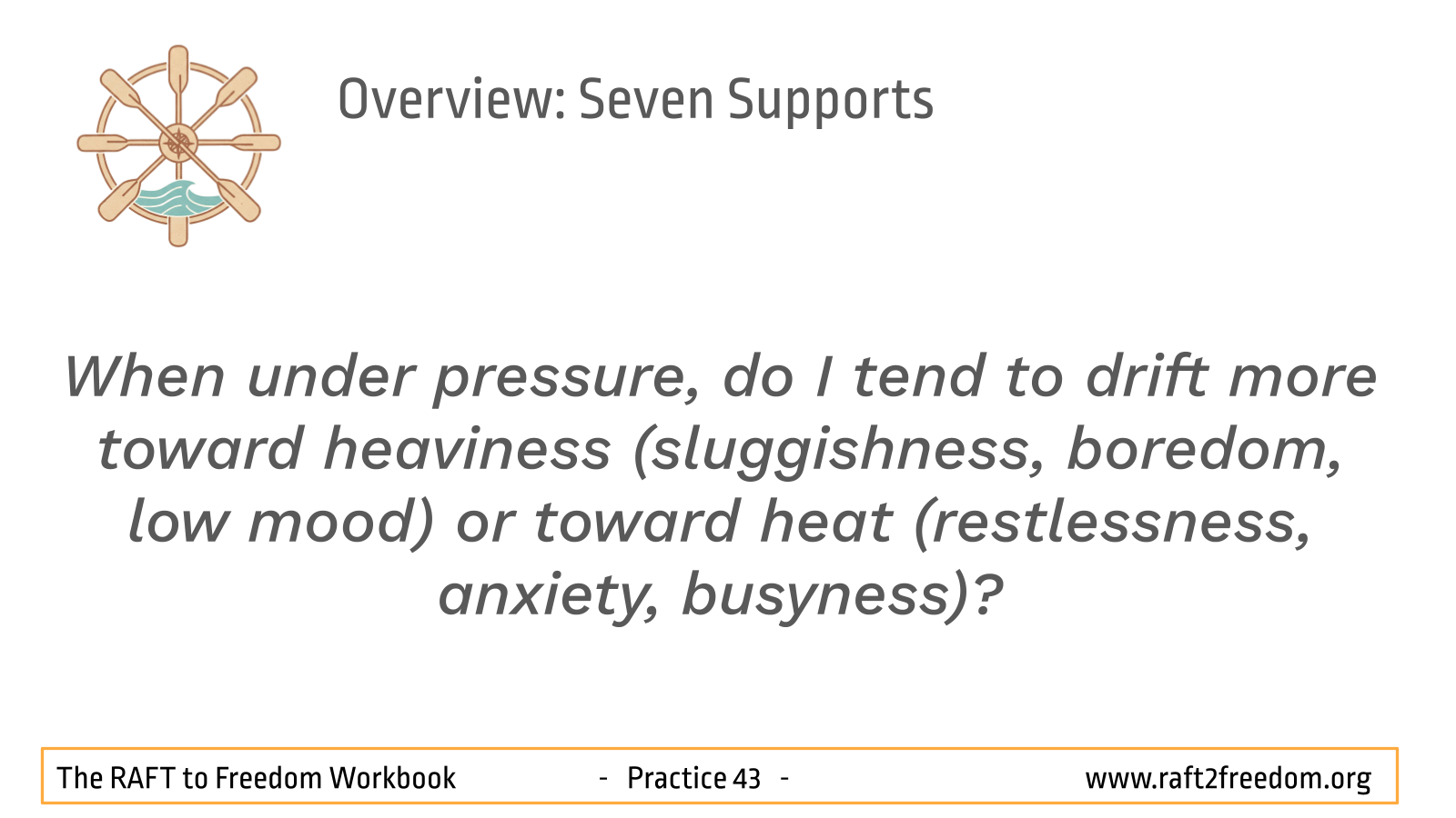 In the RAFT metaphor, we might say the raft has moved beyond emergency survival and into open-water navigation. To continue our long crossing toward the Safe Shore, we need a more refined way to read conditions and keep the vessel trimmed. The Seven Supports are our raft’s integrated instrument panel and rigging adjustments: they help us monitor the inner weather, correct course early, and stay balanced. Where the Hazards pull us toward sirens, storms, fog, whirlpools, or a spinning compass, the Supports help us adjust effort, attention, and equilibrium – so the journey becomes steadier, wiser, and increasingly self-sustaining.