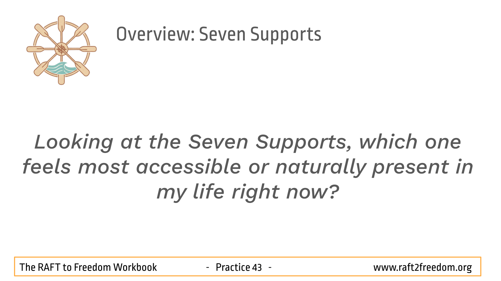 - Looking at the Seven Supports, which one feels most accessible or naturally present in my life right now?