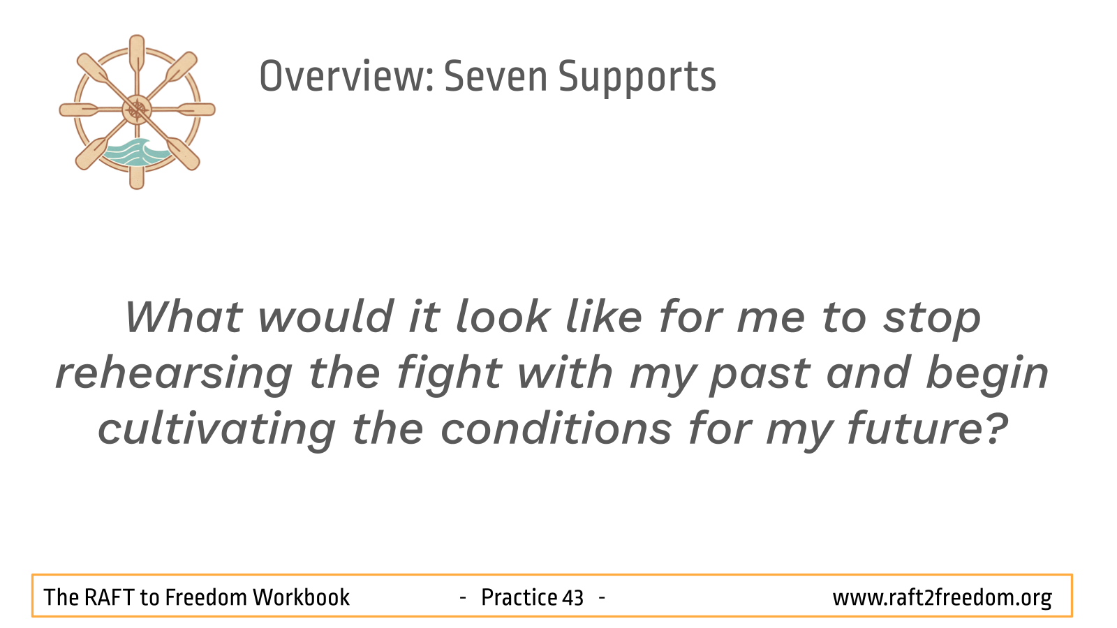 - What would it look like for me to stop rehearsing the fight with my past and begin cultivating the conditions for my future?