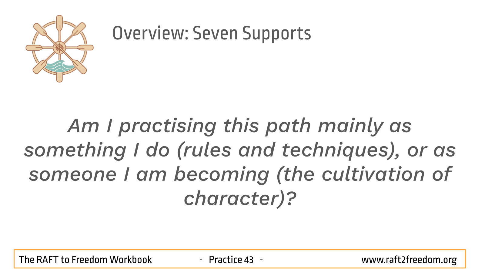 - Am I practising this path mainly as something I do (rules and techniques), or as someone I am becoming (the cultivation of character)?