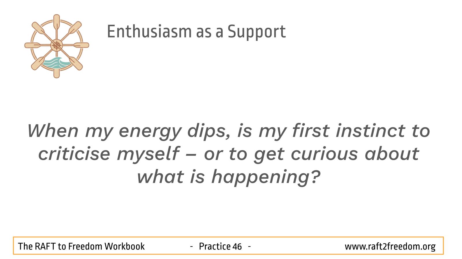 - When my energy dips, is my first instinct to criticise myself – or to get curious about what is happening?
