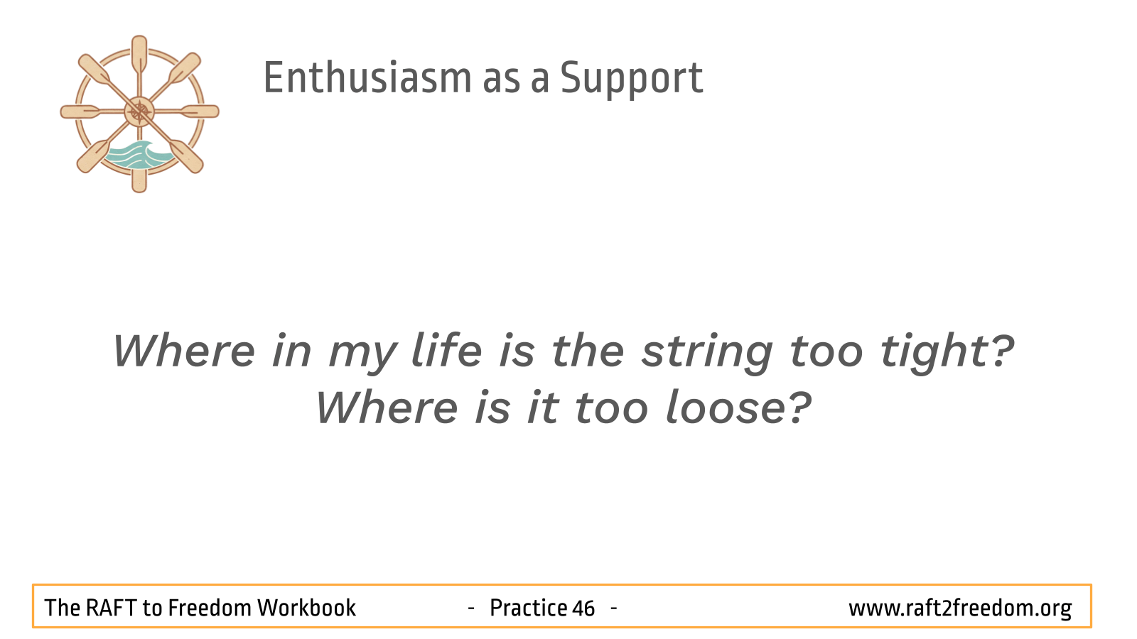 ‘Enthusiasm’ acts like the tuning peg. It tightens the mind when it is dull (often by re-awakening interest) and softens the mind when it is over-driven (often by easing pressure and restoring calm). It learns, over time, that consistency beats intensity – and that Freedom is supported by a steady rhythm rather than extremes. Gotama illustrated this with the story of the monk Soṇa, who had been striving so hard in meditation that he was close to giving up. Soṇa had once been a skilled lute player, and Gotama reminded him that a lute only makes music when its strings are tuned to a balanced pitch – not too tight, not too loose. In the same way, effort that is over-tight becomes restlessness, and effort that is too slack becomes laziness. The path is found by tuning the energy to the middle.