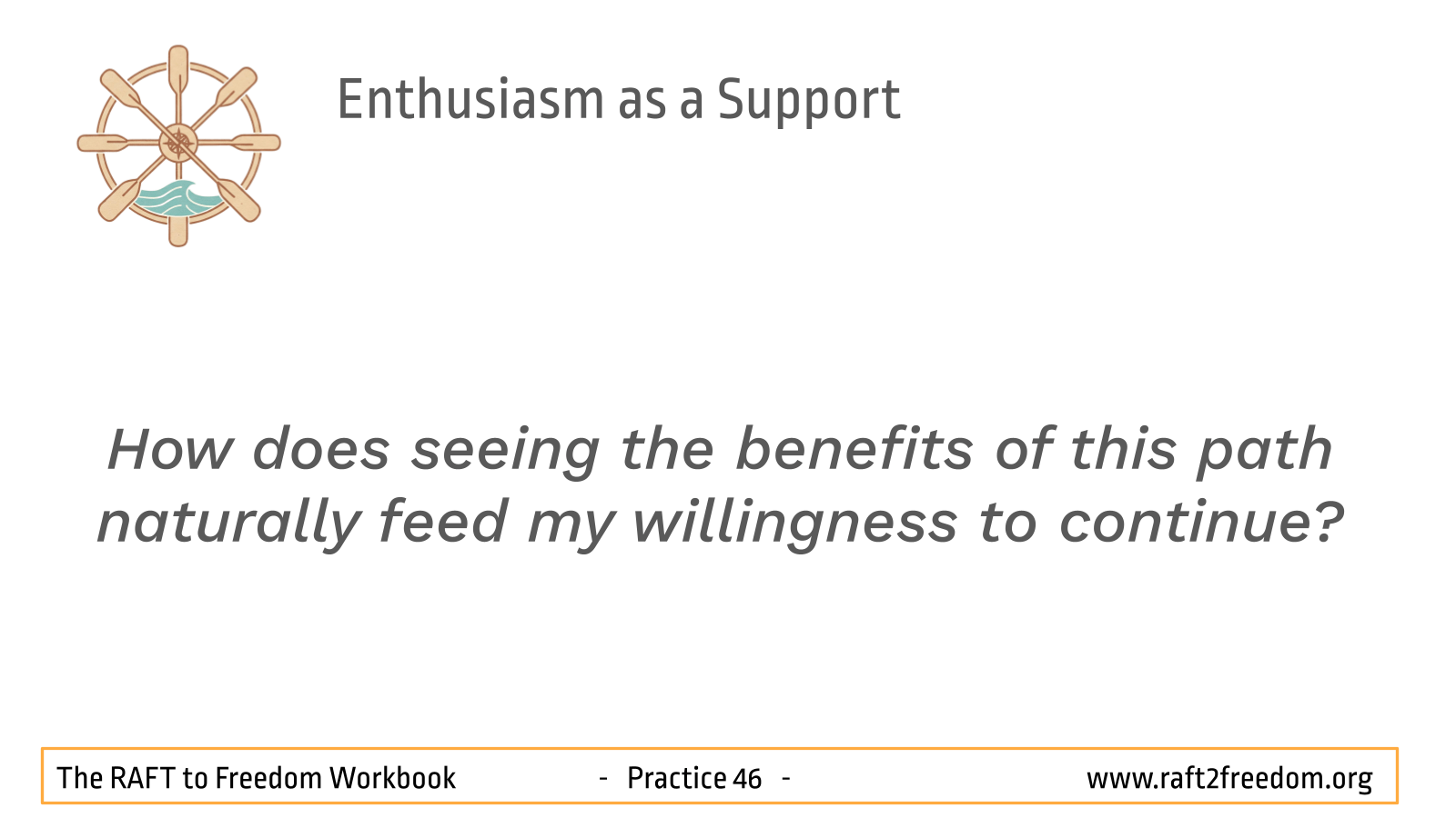 - How does seeing the benefits of this path naturally feed my willingness to continue?