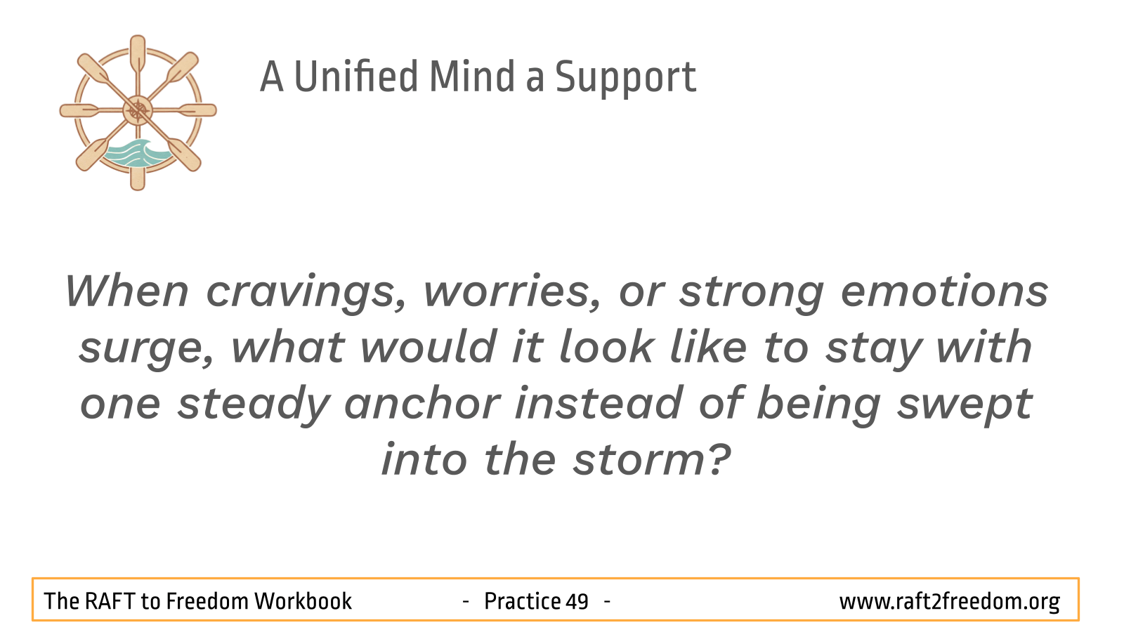 - When cravings, worries, or strong emotions surge, what would it look like to stay with one steady anchor instead of being swept into the storm?