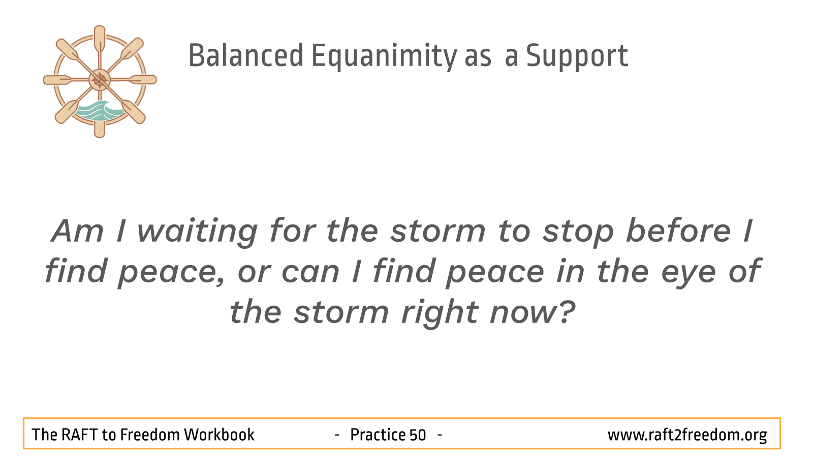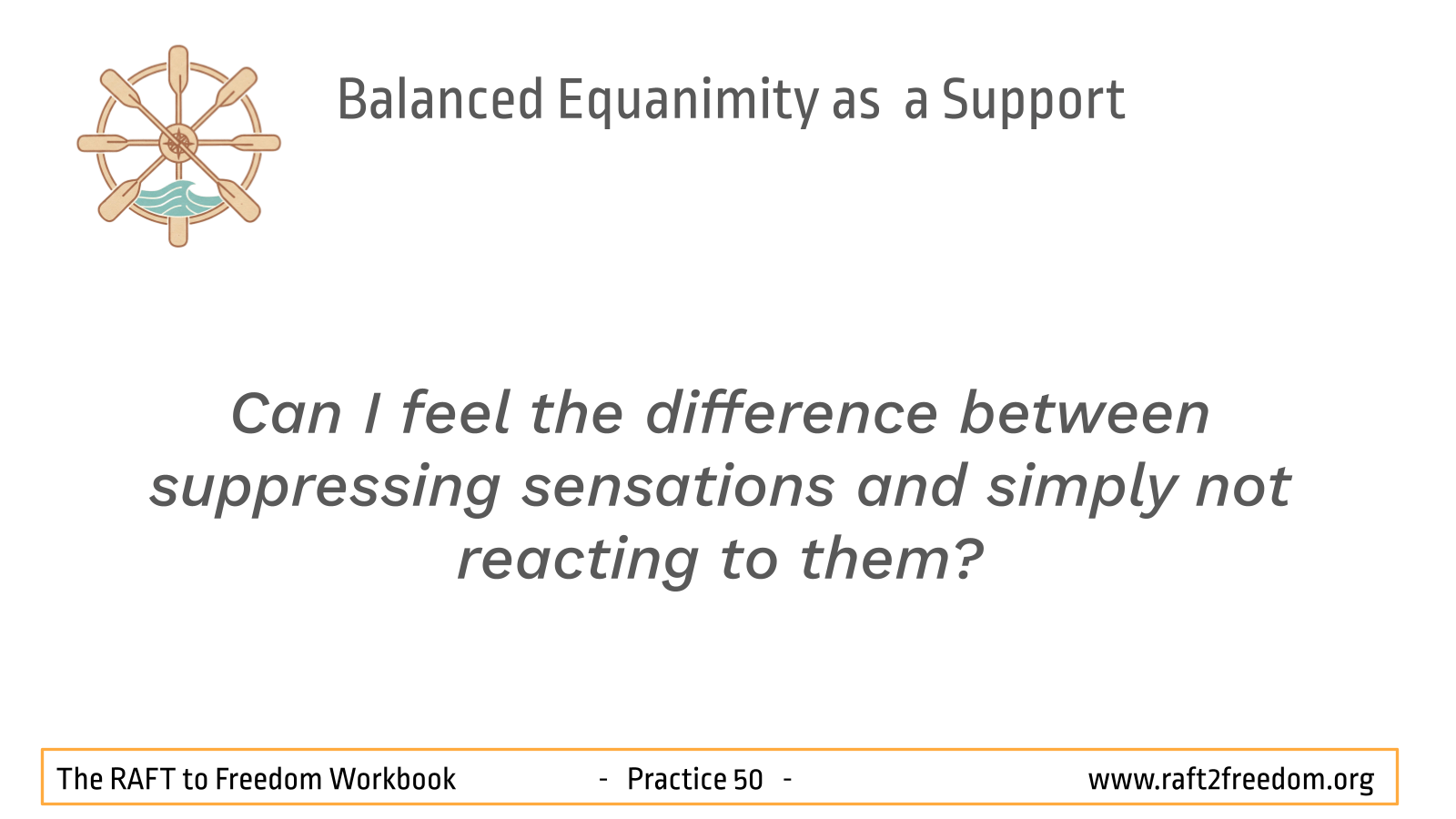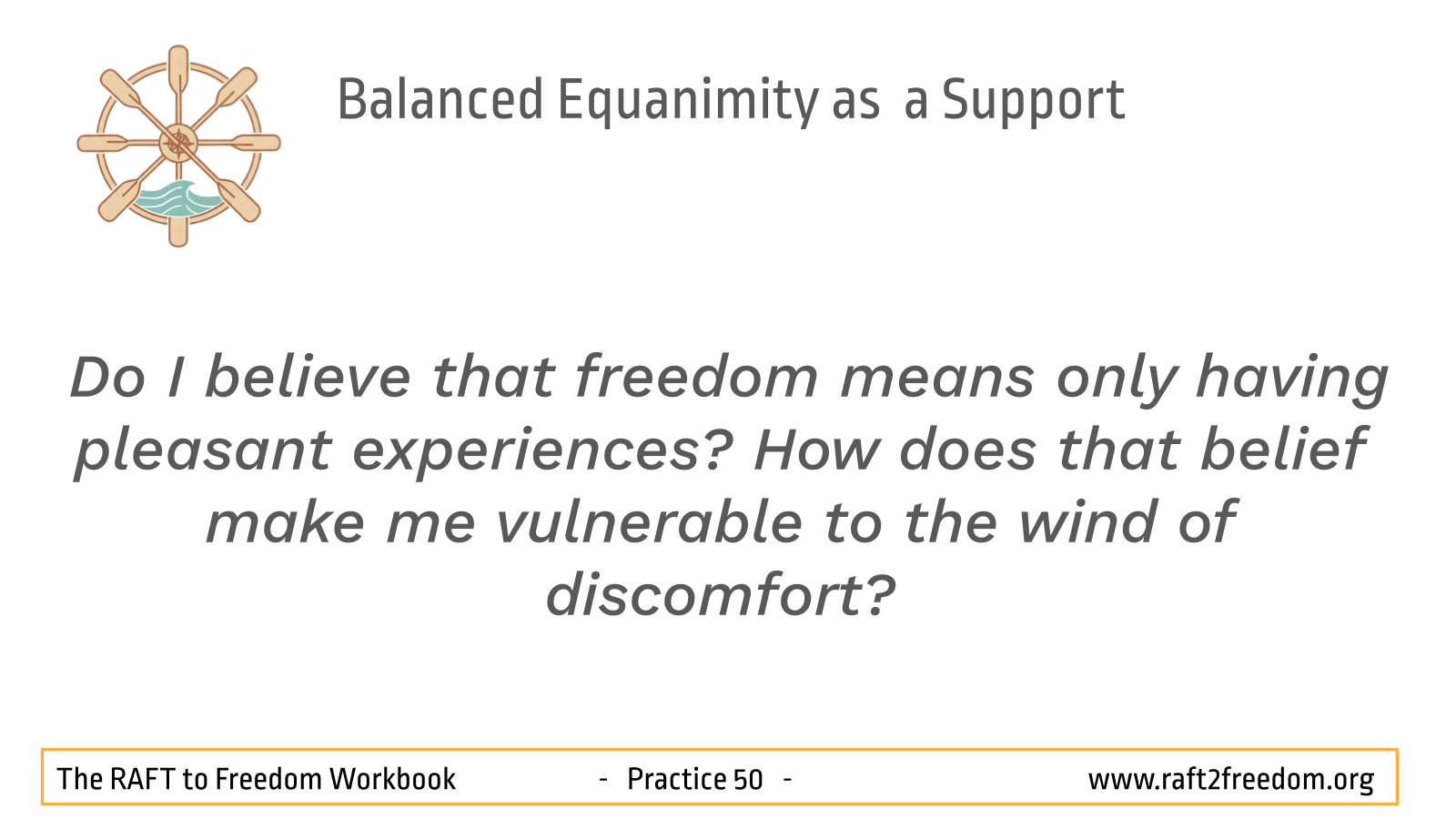 The pivot that opens the door to Freedom in this chapter is the shift from reaction (push/pull) to poise. In the cycle of cravings, compulsion and aversion, we are slaves to the hedonic imperative: we automatically pull toward anything pleasant (craving) and push away anything unpleasant (aversion). This constant motion keeps the mind agitated and the raft unstable.