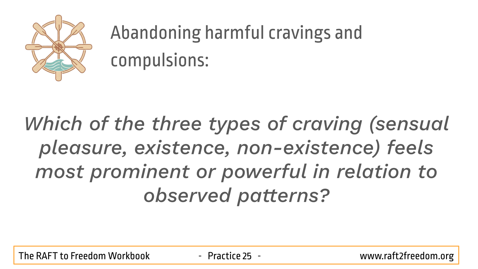- Which of the three types of craving (sensual pleasure, existence, non-existence) feels most prominent or powerful in relation to observed patterns?