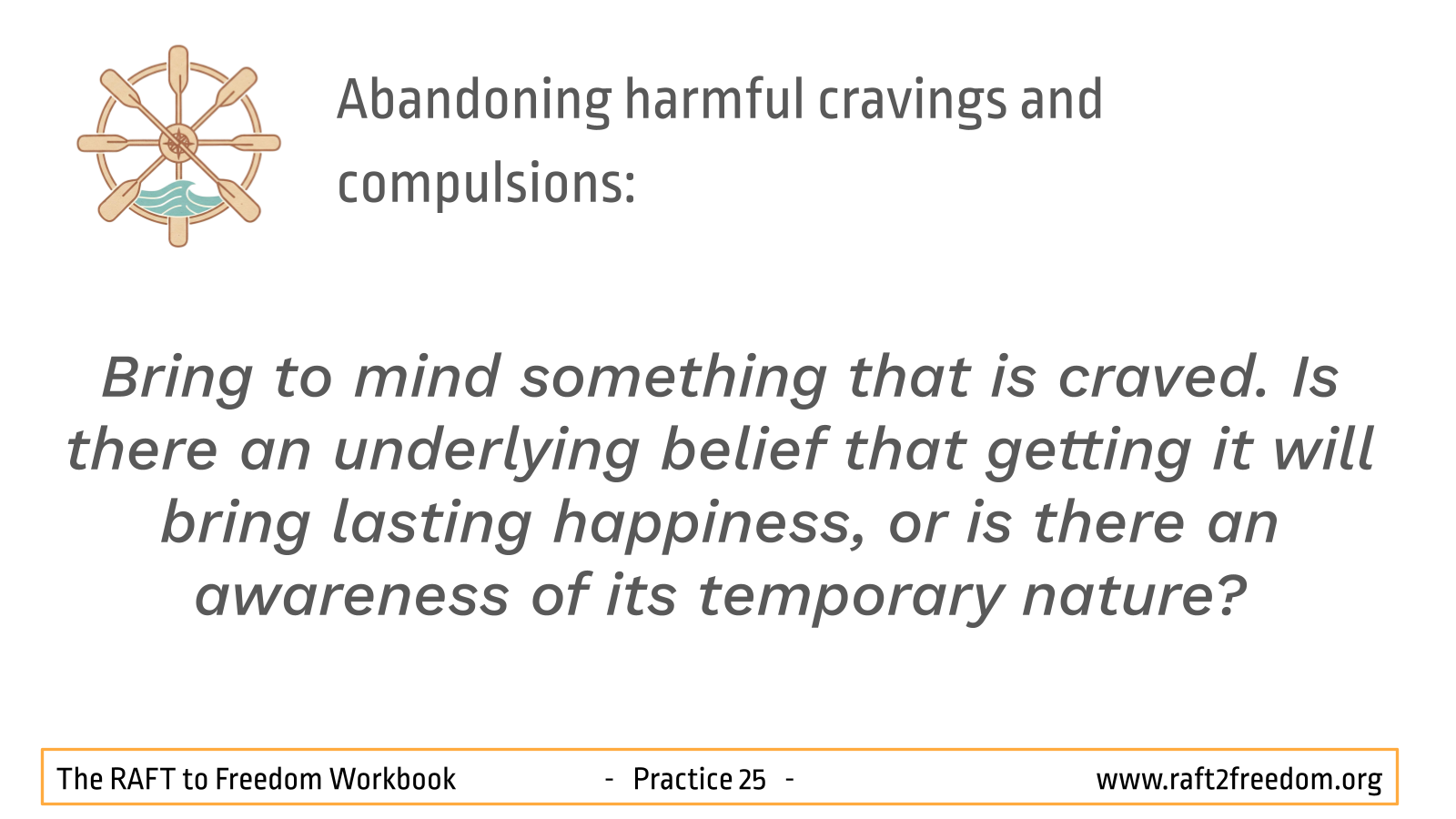 - Bring to mind something that is craved. Is there an underlying belief that getting it will bring lasting happiness, or is there an awareness of its temporary nature?
