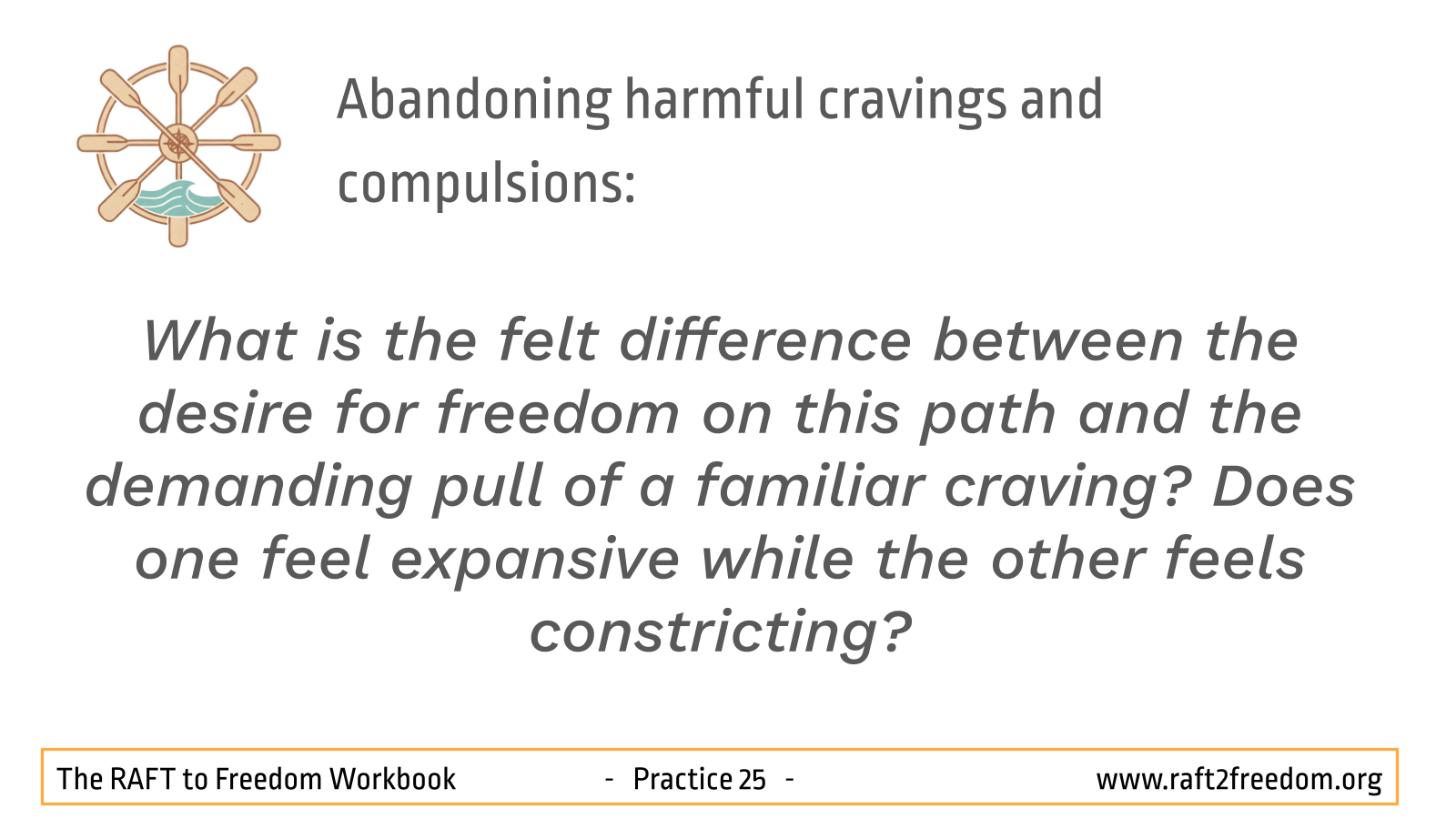 - What is the felt difference between the desire for freedom on this path and the demanding pull of a familiar craving? Does one feel expansive while the other feels constricting?