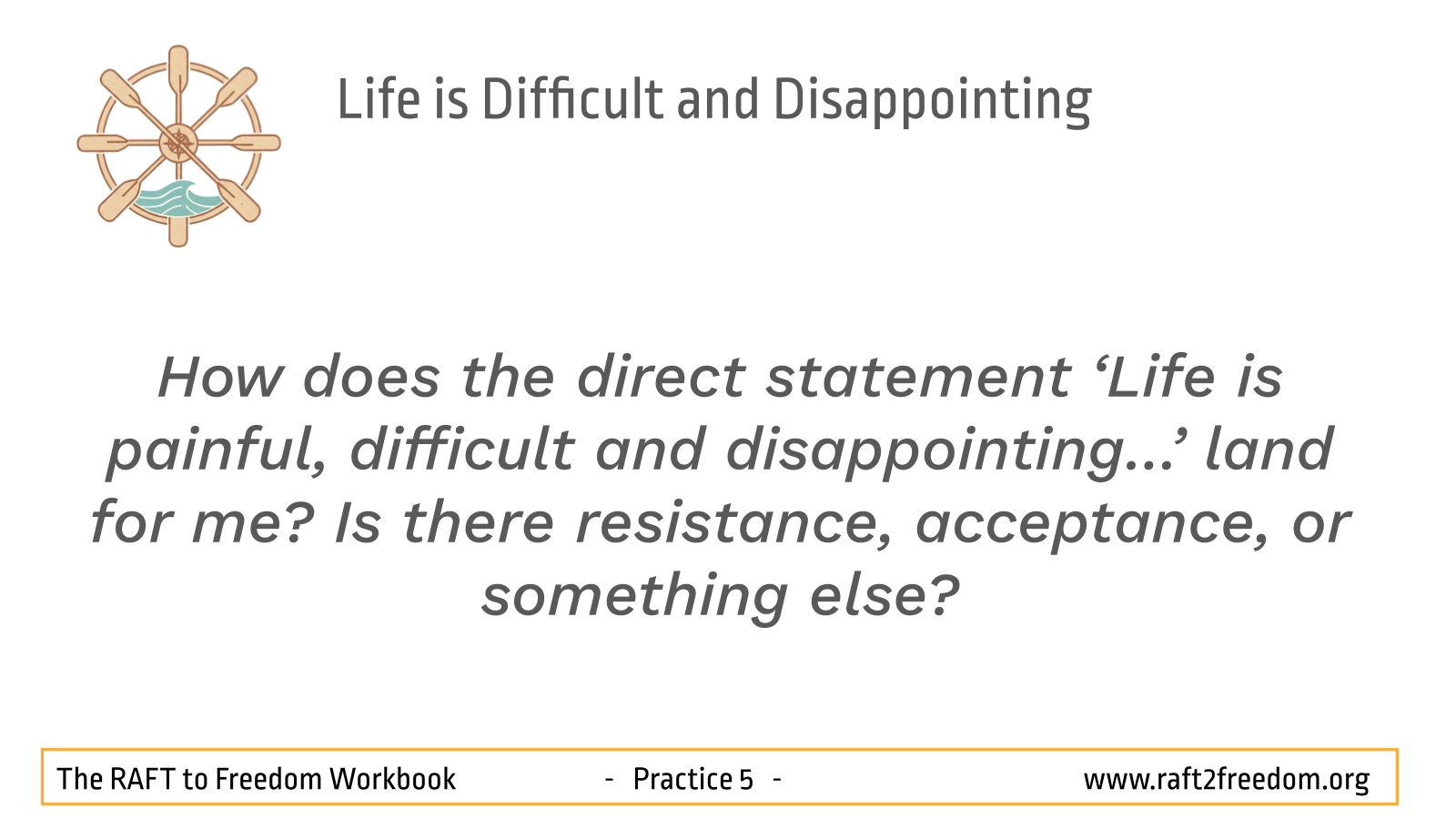 - How does the direct statement “Life is painful, difficult and disappointing…” land for me? Is there resistance, acceptance, or something else?