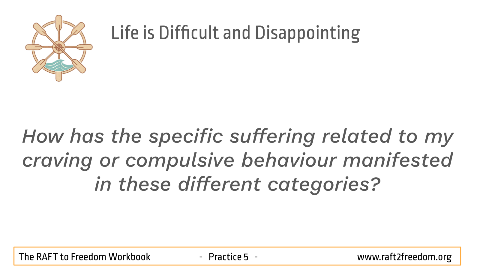 - How has the specific suffering related to my craving or compulsive behaviour manifested in these different categories?