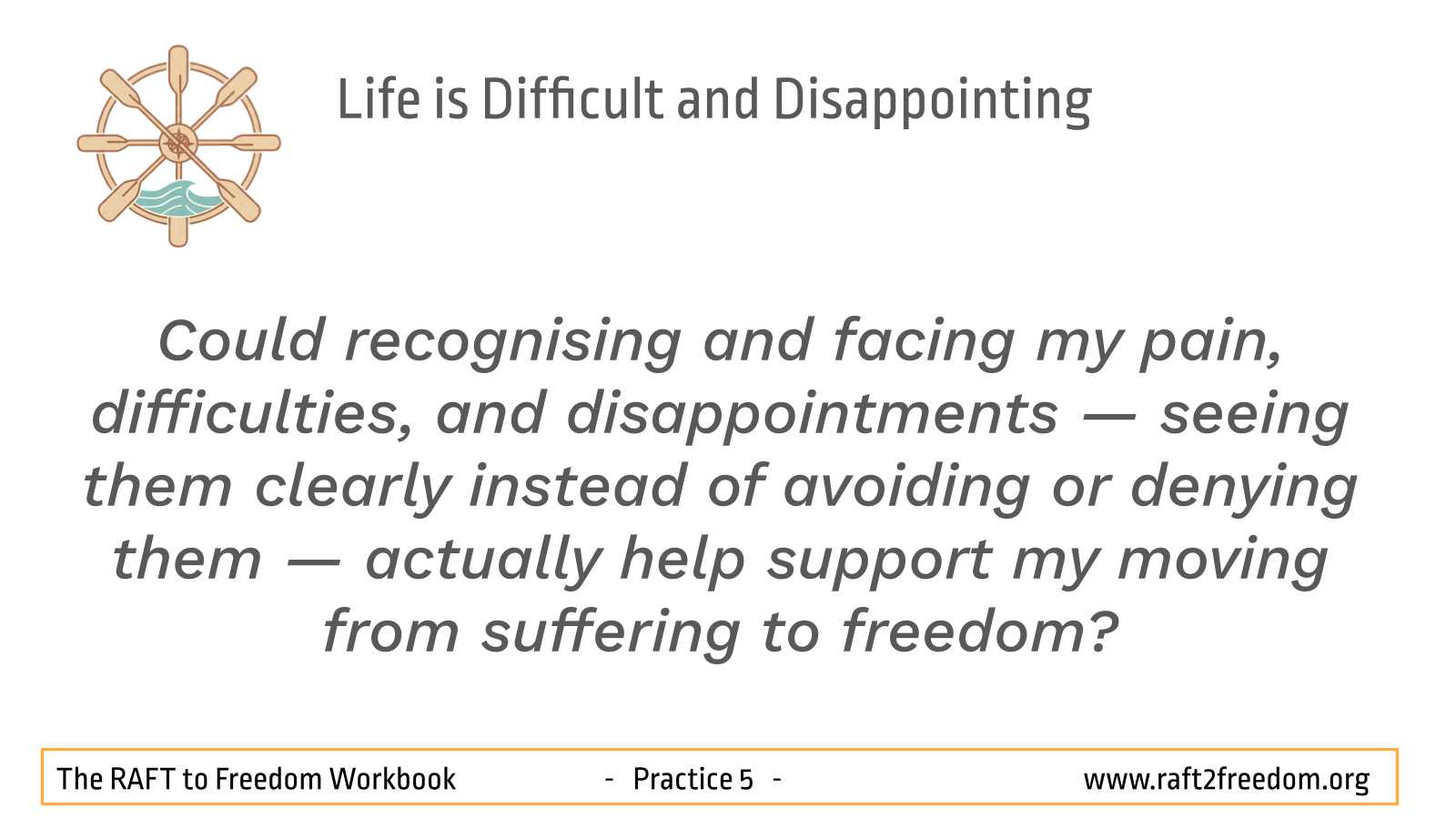 - Could recognising and facing my pain, difficulties, and disappointments — seeing them clearly instead of avoiding or denying them — actually help support my moving from suffering to freedom?