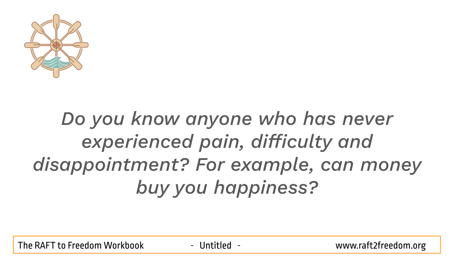 - Do you know anyone who has never experienced pain, difficulty and disappointment? For example, can money buy you happiness?