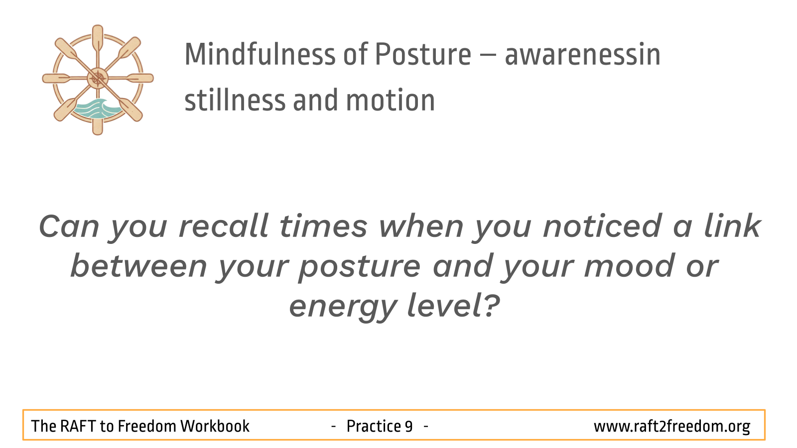 - Can you recall times when you noticed a link between your posture and your mood or energy level?