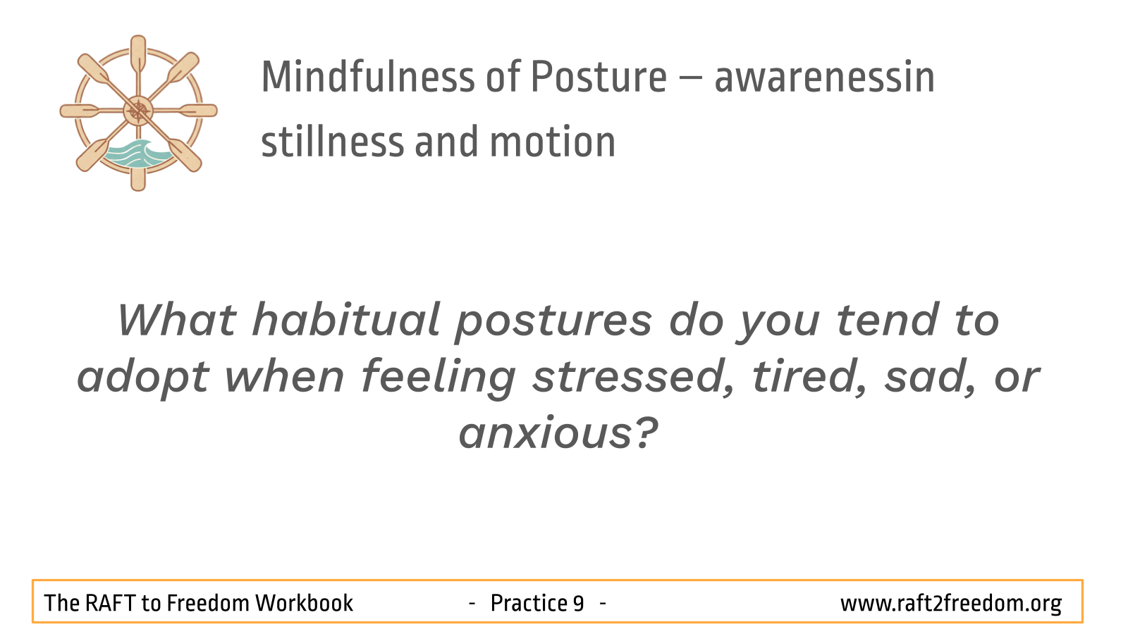 - What habitual postures do you tend to adopt when feeling stressed, tired, sad, or anxious?