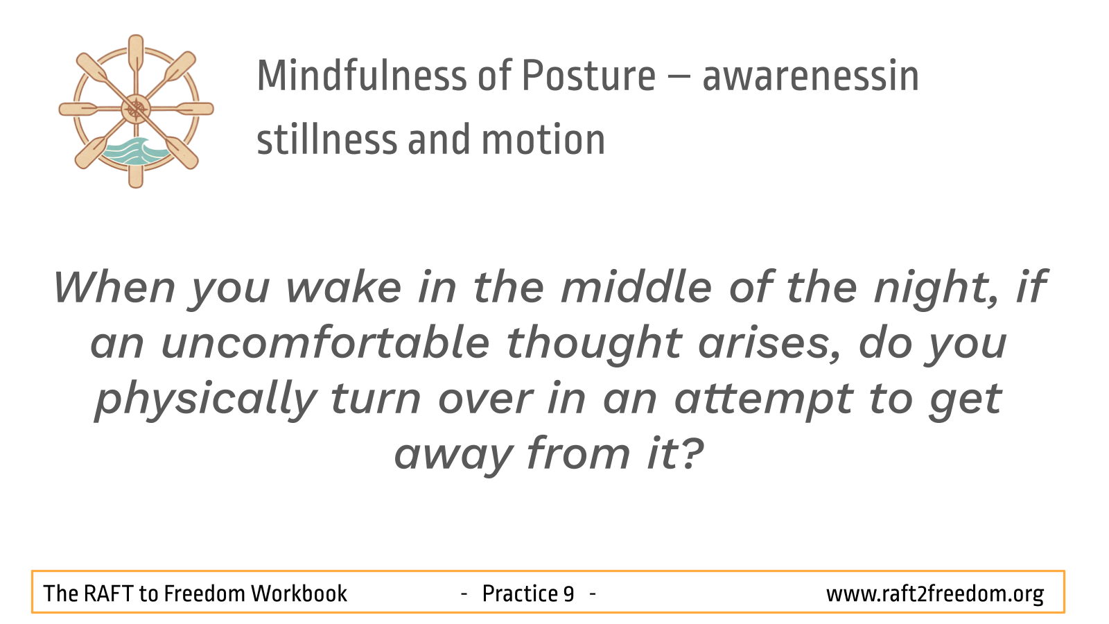 - When you wake in the middle of the night, if an uncomfortable thought arises, do you physically turn over in an attempt to get away from it?